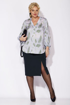 Юбка с завышенной линией талии, зауженная к низу, идеально сочетается с жакетом. Она оснащена разрезом и молнией в среднем шве, а верх юбки выполнен на обтачке, что обеспечивает комфорт и стиль. Низ юбки также декорирован атласной рюшей, придающей завершенность образу. Костюм полностью на подкладке, что обеспечивает дополнительный комфорт и изысканный вид.