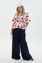 Укороченные широкие брюки кюлоты c принтом на резинке из 100% хлопка