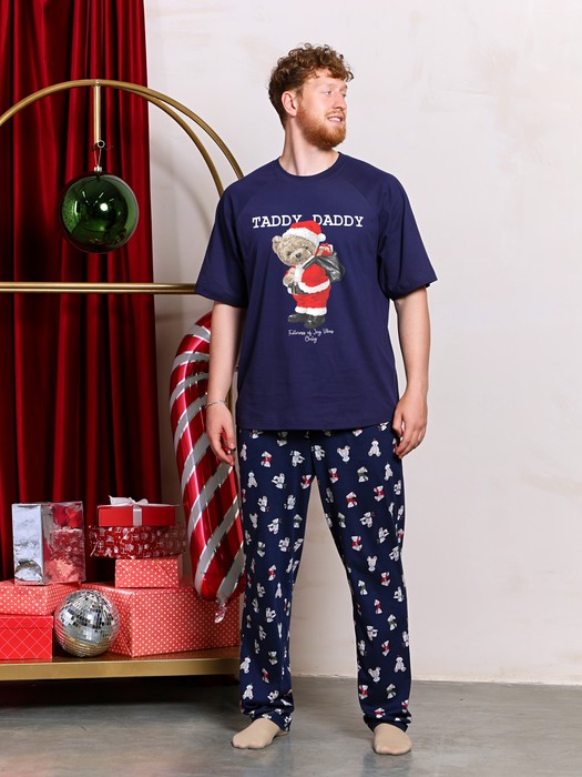 Костюм мужской из трикотажного полотна "кулирка" в комбинации двух видов: гладкокрашеного и набивного с тематическим рисунком, состоящий из футболки и брюк. Футболка из гладкокрашеного полотнас рукавами "реглан" длиной до локтя, горловиной овальной формы, обработанной втачной планкой и отделочной строчкой. В центре переда - принт, выполненгный в технике шелкографии. Брюки из полотна с набивным рисунком длинные, прямые, на притачном поясе с эластичной тесьмой внутри и карманами в боковыых швах.