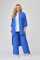 Костюм двухпредметный: состоит из джемпера и брюк. Джемпер комбинированный свободного силуэта с округлой горловиной. Рукав с передними и задними швами. Карманы в боковых швах. Брюки со стрелкой свободного кроя, верхний срез представлен широкой резинкой, с карманами.