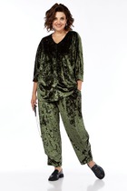 Костюм двухпредметный: состоит из жилета и брюк. Жилет назапах с полукруглым вырезом. Застёжка на петли и пуговицы на уровне плечевого шва. легантные брюки прямого кроя с боковыми карманами с отрезным бочком. Застежка на молнию и пуговицу. По переду - складки. Задние половинки с талиевыми вытачками и прорезными карманами с листочкой. Верхний срез обработан притачным поясом, по спинке на резинке.