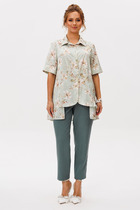 Костюм двухпредметный: состоит из джемпера и юбки. Уютный джемпер с округлой горловиной. Защипы на рукаве-реглане делают образ максимально женственным и элегантным. На рукавах есть съёмные авторские украшения в виде цветка из основной ткани. Юбка - солнце макси с узким поясом. В боковых швах расположены карманы. Застёжка на петлю и пуговицу и молнию по спинке.