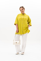 Костюм двухпредметный: состоит из жакета и юбки. Жакет рубашечного типа прямого силуэта с асимметричным низом. Рукав втачной со спущенной линией плеча, фиксируется на пату. Застежка центральная на петли и пуговицы, смещённая по косой. На левой полочке накладной карман с клапаном. Воротник отложной на стойке до половины спинки. Юбка - солнце макси с узким поясом. В боковых швах расположены карманы. Застёжка на петлю и пуговицу и молнию по спинке.