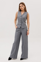 Комплект женский, 2-х предметный, состоящий из жакета и платья. Жакет полуприлегающего силуэта, выполнен из костюмно-плательной ткани. Модель на подкладке, с плечевыми накладками. Перед с рельефными швами, выходящими из пройм до низа и нагрудными вытачками, направленными от рельефов к центру груди. Борта прямые, без застежки, не доходят до центра переда. Спинка со средним швом и рельефами, идущими от плеча до низа. Горловина округлой формой, спереди углубленная. Рукав втачной, длинный. Жакет декорирован несъемным «цветком» из основной ткани. Длина жакета – 56 см; длина рукава – 60 см. Платье полуприлегающего силуэта, выполнено из костюмно-плательной ткани. Модель на трикотажной подкладке, с плечевыми накладками. Перед отрезной по линии талии. Верхняя часть с нагрудными вытачками, идущими из пройм и двумя вертикальными подрезами по центру. В нижней части расположены талиевые вытачки, выходящие из подреза. Горловина и вставка лифа переда декорированы пришивными перламутровыми бусинами. Спинка с талиевыми вытачками и средним швом, в верхней части которого обработана застежка на потайную тесьму-«молнию» (50см), а в нижней - шлица. Горловина округлой формы, по переду углубленная. Рукав втачной, длиной 3/4. Длина платья – 106 см; длина рукава – 40 см.