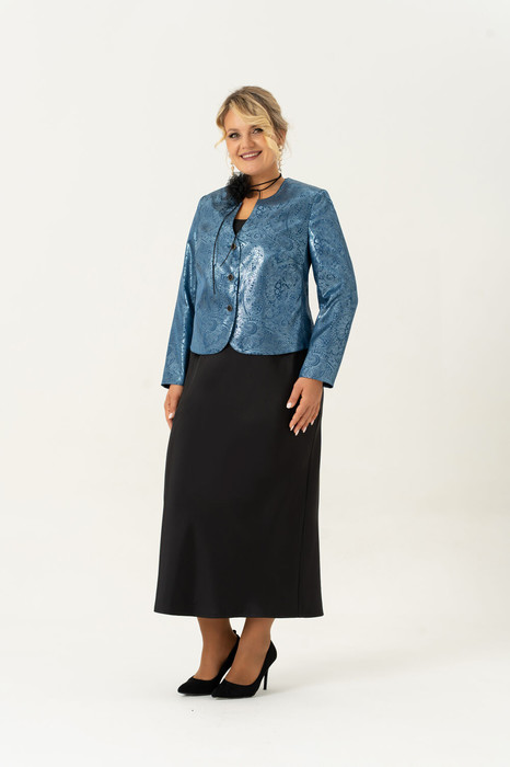 Женственный и стильный комплект с пиджаком для особого случая! Это изделие сделает вас неповторимой и элегантной. Модель состоит из двух элементов: лаконичного платья из струящегося атласа, кроеного по косой и короткого жакета, полуприлегающего силуэта на подкладке. Такой тандем создает утонченный и женственный образ, который прекрасно подойдет как для вечерних выходов, торжеств, так и для повседневного ношения или работы в офисе. Идеален как наряд для мамы жениха или невесты на свадьбу или на день рождения. Подойдет для полных plus size. Жакет полуприлегающего силуэта, с центральной застёжкой на петли и пуговицы и с рельефами от плеча по переду, закругленный низ борта. Фигурная горловина жакета легко сочетается с любыми аксессуарами. Спинка в жакете со средним швом . Рукав втачной, двухшовный, длинный. Изысканная ткань придает элегантность и неповторимость, комфорт и уют. Платье кроенное по косой, что обеспечивает красивую посадку и мягкое облегание по фигуре. Углубленная горловина добавляет лёгкой чувственности, а нагрудные вытачки от проймы подчёркивают линию груди.