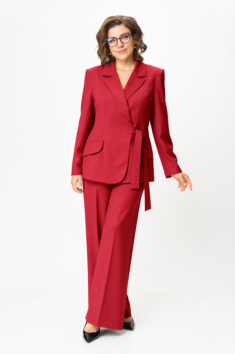 Комплект женский, состоящий из жакета и брюк, выполнен из костюмной ткани.