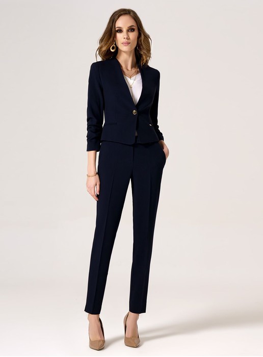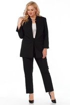 Стильный лаконичный брючный костюм. Жакет с застежкой на одну пуговицу. Жакет полуприлегающего силуэта, с V-образным вырезом горловины. По переду и по спинки имеются вытачки и рельефы, которые обеспечивают отличную посадку изделия по фигуре. Рукава втачные, длиной 3/4. Брюки классические на поясе, укороченые, с карманами по переду. Отличный вариант как для деловых встреч, так и для торжественных мероприятий.