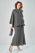 Длина жакета по спинке около 68,5 в размерах 40-46 и около 71,5 см в размерах 48-52, длина рукавов около 63 см. Длина юбки по боковому шву с поясом около 80 см.