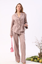Длина жакета по спинке около 64 см в размерах 40-46 и около 67 см в размерах 48-52, длина рукавов около 61,5 см. Длина юбки по боковому шву с поясом около 80 см.