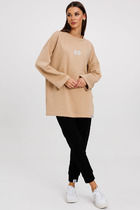 Длина жакета по спинке около 42 см в размерах 40-46 и около 45,5 см в размерах 48-52, длина рукава около 60,5 см. Длина брюк по боковому шву с поясом около 109,5 см, длина по внутреннему шву около 83 см