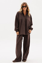 Костюм-двойка из свободной рубашки и шорт из фактурной вискозы.