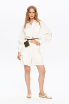 Длина жакета по спинке около 71 см в размерах 40-48 и около 73 см в размерах 50-52, длина рукава около 61 см. Длина брюк по боковому шву с поясом около 112 см в размерах 40-46 и около 113 см в размерах 48-52. Длина брюк по внутреннему шву около 81 см