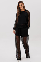 Длина жакета по спинке около 71 см в размерах 40-48 и около 73 см в размерах 50-52, длина рукава около 61 см. Длина брюк по боковому шву с поясом около 112 см в размерах 40-46 и около 113 см в размерах 48-52. Длина брюк по внутреннему шву около 81 см