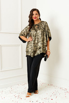 Костюм-двойка из свободной рубашки и широких брюк на резинке из полупрозрачного фактурного шифона.