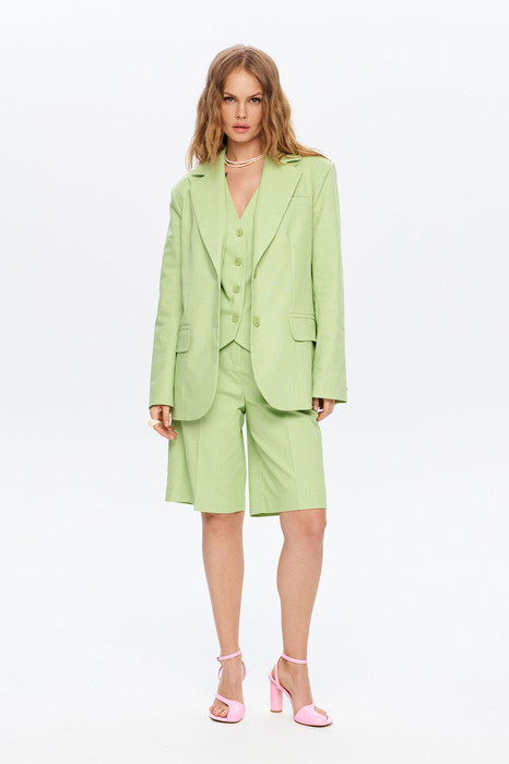 Льняной костюм-двойка из оверсайз жакета и шорт-бермуд.