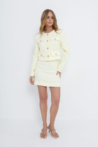 Детали: жакет прямого силуэта, пиджачный воротник, перед с прорезными функциональными карманами, однобортная застежка на петли и пуговицы, спинка со средним швом и шлицей, рукава втачные двухшовные, жакет на подкладке. Шорты с высокой посадкой, притачной пояс со шлевками и резинкой по спинке, застежка на молнию и пуговицу, боковые карманы.