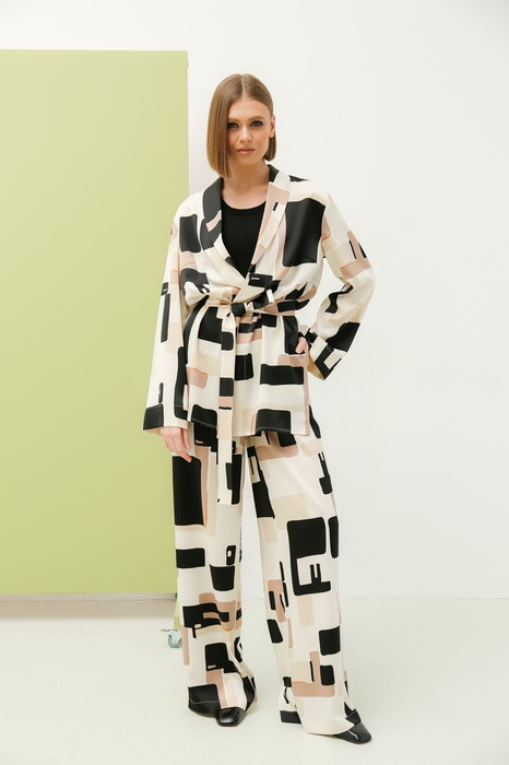Стильный костюм-кимоно из гладкой неплотной ткани.