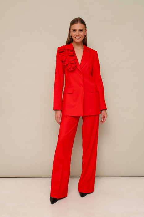 Эффектный 2-предметный комплект, состоящий из жакета и брюк, выполненный из костюмной ткани.