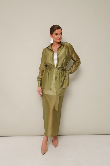 Элегантный 3-предментный комплект, состоящий из топа, блузки и юбки.