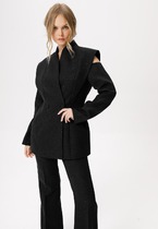 Жилет полуприлегающего силуэта с центральной застежкой на петли и пуговицы.
