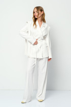 Стильный 2-предметный костюм, состоящий из жилета и юбки, выполнен из костюмно-плательной ткани и креп-шифона.