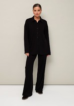Брюки классического кроя с заутюженными стрелками и с боковыми наклонными карманами. Пояс притачной с застежкой на пуговицу и тесьму-молнию, сзади на резинке, для регуляции размера.