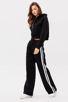 Жакет современного прямого силуэта, двубортный с застежкой на петли и пуговицы. По плечевому шву обработаны погоны. Воротник пиджачного типа с отложными лацканами. Спереди отлетная кокетка. Рукава кроя реглан, с патами по низу, с фиксацией на пряжки. Спинка со средним швом. Изделие на подкладке. В комплекте пояс из основной ткани с пряжкой.