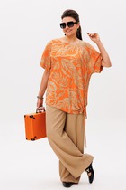 Элегантная блузка прямого кроя, выполнена из струящейся ткани с благородным матовым блеском. Горловина с рубашечным воротником на отрезной стойке, центральная застежка на петли и пуговицы. Перед блузки выполнен с декоративным перекрутом в низжней части застежки. Рукава со спущенной линией втачивания плеча, манжеты с застежкой на петли и пуговицы. Спинка с отрезной кокеткой и бантовой складкой.