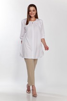 Комплект из костюмной ткани на подкладке, состоящий из жакета и юбки. Жакет приталенного силуэта с прорезными карманами с клапанами по переду. Воротник-английский, рукава - двухшовные. Застегивается на две пуговицы. Юбка на подкладке, слегка зауженная к низу, с рельефами и поясом. В среднем шве заднего полотнища юбки - застежка-молния и шлица. Кант по краю борта, клапанам и рельефам юбки добавляет стиля и элегантности.