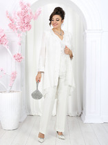 Роскошный комплект из стрейчевой костюмной ткани и сетки. Состоит из туники и юбки. Асимметричная туника с вытачками по переду и спинке. Рукава втачные, длинные. Туника застегивается на молнию в среднем шве спинки. Декорирована брошью и бантиком. Нижняя юбка из сетки. Юбка со сборкой по линии талии и поясом-резинкой.