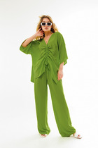 Двубортный жакет из костюмной ткани на подкладке. Воротник-с отложными лацканами пиджачного типа, рукава – двухшовные. По переду - прорезные карманы с клапанами. Застегивается на 2 пуговицы и одну потайную.