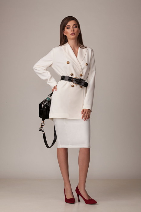 Длина жакета по спинке 82 см, дляна рукава-60,5см; длина юбки 67 см.
