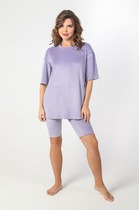 Повседневный домашний костюм. Футболка приталенная с принтом и вставкой из отделочной ткани. Бриджи до колена