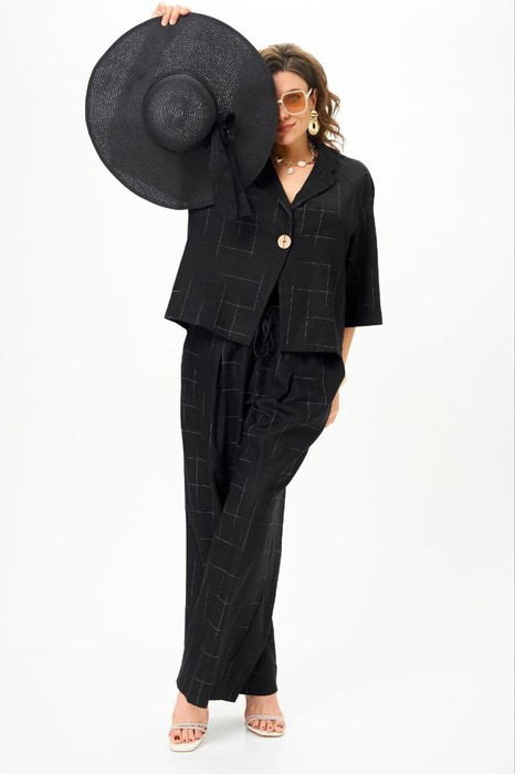 Комплект брючный летний . Состоит из жакета выполненного изо льна. Свободная посадка, жакет без подкладки. Рукав реглан. Застежка на одну пуговицу. Палаццо, брюки в стиле Марлен Дитрих, модели свободного силуэта. Пояс на резинке с дополнительным шнуром, что гарантирует максимально комфортную посадку брюк на фигуре, функциональные карманы. Идеальный вариант для жаркого офиса, вечерних летних прогулок. Прекрасно дополнит Ваш гардероб и будет летним любимчиком.