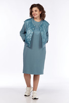 Костюм женский из трикотажного гладкокрашенного полотна «кулирка с лайкрой», состоящий из футболки и бридж. Футболка свободного покроя, со спущенным плечом и втачными рукавами длиной до локтя, горловиной овальной формы, обработанной втачной планкой и принтом на полочке, выполненным в технике «шелкографии». В нижней части боковых швов – разрезы.Бриджи – классического покроя, на резинке.