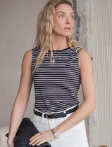 Костюм майка с шортами. Майка с подрезом под грудью, кокетка притачена внахлест и закреплена тремя пуговками. Горловина и проймы обработаны окантовкой, окантовка вышита мережкой. Шорты свободного покроя, боковые швы зашиты внахлест. Шорты обработаны окантовкой с мережкой.