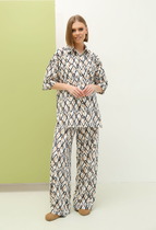 Костюм женский двухпредметный из легкой струящейся ткани состоящий из блузки и брюк.