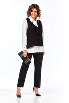 Рубашка свободного прямого кроя с втачным спущенным рукавом. По переду в верхней части накладные карманы. Застежка центральная на 8 петель и пуговиц. Воротник отложной на стойке. В боковых швах обработаны разрезы. Рукав длинный, по низу притачная манжета с застежкой на 2 петли и пуговицы.