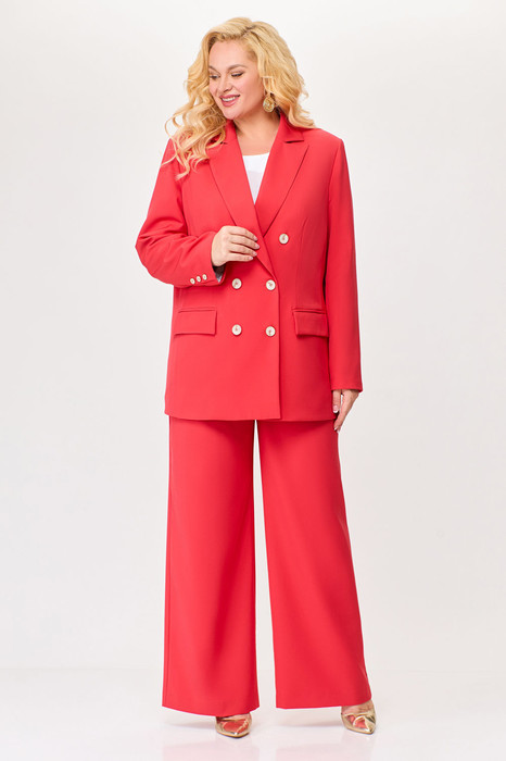 Костюм 2-х предметный, состоящий из жакета и брюк. Жакет и брюки выполнены из качественной поливискозной костюмной ткани. Жакет двубортный на подкладке.