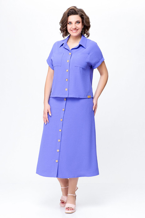 Костюм женский двухпредметный, состоит из блузы и юбки, выполнен из вискозной ткани с эффектом «жатка».