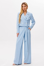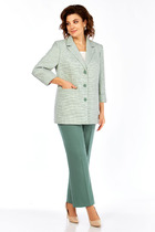 Комплект женский, 2х предметный, состоящий из джемпера и брюк. Джемпер прямого силуэта с длинным рукавом . Рукав со спущенной линией плеча. Вырез горловины круглой формы с подрезной бейкой. По низу переда декоративная нишивка. Брюки прямые с наклонными карманами спереди. Пояс притачной с резинкой.