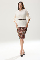 Блузка прямого силуэта с коротким цельнокройным рукавом. По переду, от плеча, небольшая сборка. Горловина круглой формы. Низ рукава и горловина обработаны притачной бейкой. Снизу, по центру переда и спинки, сборка и притачная планка. Блузка на трикотажной подкладке.Верх блузки-трикотажная сетка. Декором служит съемный цветок.