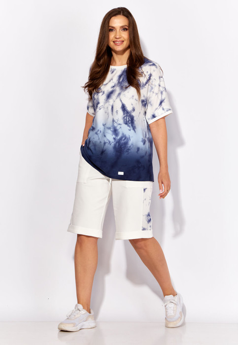 Комплект женский, 2х предметный, состоящий из блузки и удлиненных шорт.