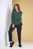 Костюм женский рубашка и шорты. Рубашка женская свободного силуэта. Спущенная линия плеча. Рукав короткий. Длина изделия выше середины бедра. Центральная застежка на 5 клёпок. Стоячеотложной воротник пиджачного типа с закруглёнными углами. На полочке нагрудный настрочной карман. Внешний срез кармана, край воротника, фигурная линия низа обработаны при помощи декоративного канта. Шорты среднего объёма с притачным поясом и манжетом. Карманы "хулиган". Срез притачивания манжета с декоративным кантом.