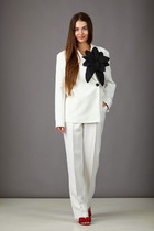 Этот изысканный брючный костюм – воплощение элегантности, загадочности и безупречного вкуса. Лаконичный силуэт, строгие линии и идеальная посадка подчёркивают утончённость образа.
