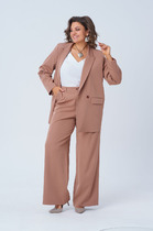 Жакет Длина по среднему шву спинки – 55,0 см (±2,0 см), Ширина на уровне глубины проймы - 59,5 см (±1,0 см), Ширина на уровне линии талии - 55,5 см (±1,0 см), Ширина на уровне линии низа - 63,0 см (±1,0 см), Длина рукава - 61,5 см (±1,0 см), Ширина рукава вверху - 22,0 см (±1,0 см), Ширина рукава по низу - 13,5 см (±0,5 см). Длина плеча - 12,0 см (±0,5 см). Юбка Длина по среднему шву заднего полотнища с поясом – 72,0 см (±2,0 см), Ширина на уровне линии талии с резинкой - 44,0 см (±1,0 см), Ширина на уровне линии талии с резинкой (в растянутом виде) - 49,0 см (±1,0 см), Ширина на уровне линии бедер - 60,0 см (±1,0 см). Ширина пояса - 3,0 см (±0,5 см)