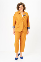 Костюм молодежный из тканого полотна в полоску, состоящий из блузы - рубашки и шорт. Блуза – укороченного силуэта, свободного покроя, с короткими цельнокроеными рукавами, обработанными манжетами, акцентными декоративными завязками спереди, отложным воротником и центральной бортовой застежкой на петли и пуговицы.Шорты - свободные, средней длины, с карманами в боковых швах, на притачном поясе с эластичной тесьмой внутри, с двойной подгибкой низа имитирующей манжет.