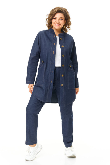 Жакет свободной формы прямого силуэта со спущенной линией плеча. Центральная бортовая застёжка с планкой на петли-пуговицы. По спинке и переду обработана кулиса со втянутой шляпной резинкой и фиксаторами. Функциональные накладные карманы. Воротник стойка. Рукав длинный.
