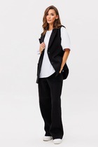 Жакет полуприлегающего силуэта с естественной линией плеча. Спинка со средним швом и рельефами из плеча. Перед с рельефами из плеча и прорезными карманами. Застежка центрально-бортовая на петлю-пуговицу. Горловина углубленная авторской формы. Рукав втачной длинный. В локтевом шве рукава обработана отлетная шлица с отделочными пуговицами.
