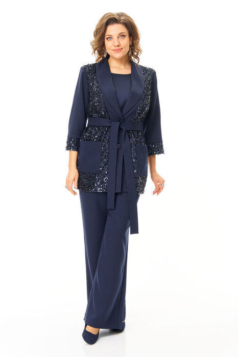 Комплект женский состоит из жакета, топа и брюк.